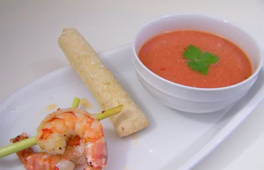 Jetzt wo es so schön warm ist, bereite ich gerne kalte Suppen zu. Dieses Melonen-Süppchen gab es bei uns als leichtes Abendessen. Allerdings hatte ich es mit der Chili etwas übertrieben. Die Suppe war zwar angenehm kühl aber nach dem Essen war mir ganz schön heiß ;)