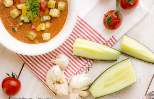 In den nächsten Tagen soll es ja wieder super heiß werden und wer hat bei diesen sommerlichen Temperaturen dann schon Lust, zu kochen? Also ich nicht! Etwas essen müssen wir aber trotzdem, also bleibt, entweder, eine Stulle zu schmieren oder aber ein leichtes Süppchen, das komplett ohne Kochen [...]