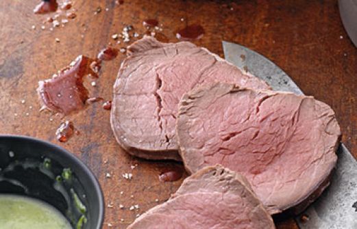 Pochiertes Ochsenfilet mit Meerrettichsauce Zutaten ca. 750 g Ochsenfilet (aus dem Mittelstück) Salz schwarzer Pfeffer aus der Mühle 4 EL Olivenöl 2 kleine Zwiebeln (à ca. 50 g) 2 Scheiben Toastbrot 2 EL Butter 550 ml Rinderbrühe 200 g Sahne 1 Bund glatte Petersilie 400 g W [...]