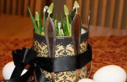 Guten Morgen hat es bei Euch auch wieder geschneit? Bis Ostern ist ja noch eine Weile hin, aber diese Osterdeko, die ich im www entdeckt habe, musste ich schon mal ausprobieren... Für diese Deko habe ich eine Konservendose mit PP beklebt... 6 Löffel umgebogen und um die Dose gestellt, mit Haush [...]