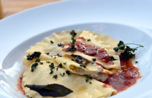 Mezzolune mit einer Füllung aus Aubergine ,Scarmorza ,Knoblauch und Ricotta