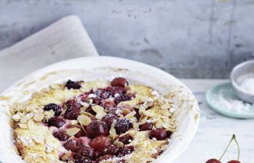 Hirse-Mandel-Auflauf mit Kirschen Zutaten 300 ml Milch 1 TL abgeriebene Bio-Zitronenschale Salz 100 g Vollrohrzucker 80 g Hirse 2 Eier 400 g Magerquark 300 g frische oder TK-Sauerkirschen , entsteint 50 g Mandelblättchen 2 EL Puderzucker Butter für die Form Anzahl Po [...]