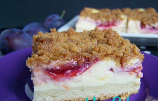 Unser Baum hängt wieder voller Zwetschgen, und da es nicht immer nur Zwetschgendatschi sein soll, habe ich sie diesmal mit Quark und leckeren Amarettinistreuseln kombiniert.