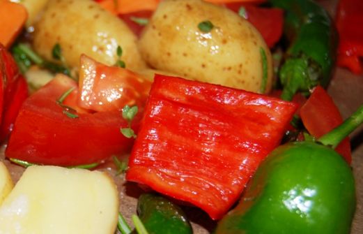 Gemüse putzen und in große Stücke schneiden. Gemüse in einer Schale [...]