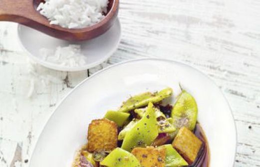 Geschmorter Tofu mit Frühlingszwiebeln Zutaten 200 g breite grüne Bohnen Salz 20 g frischer Ingwer 1 Knoblauchzehe 1 EL helle Misopaste (aus dem Asienladen) 1 TL frisch gemahlener schwarzer Pfeffer ½ TL frisch gemahlener Szechuanpfeffer 1 große Dose Zucker 1 Bund Frühlingszwi [...]