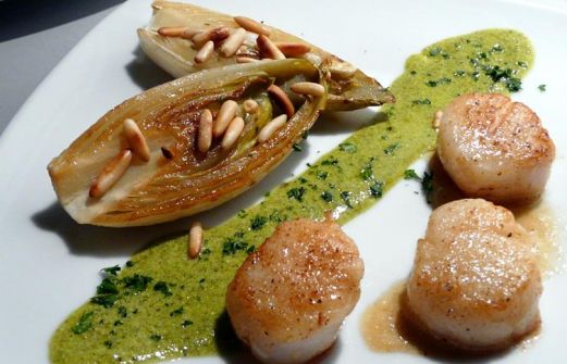 Den Chicorée putzen, waschen und längs halbieren. Öl in einer beschichteten Pfanne erhitzen, Chicoréehälften mit der Schnittfläche nach unten in die Pfanne legen und anbraten. Wenn sie etwas gebräunt sind umdrehen und von der anderen Seite weiter bräunen. Mit Salz und Pfeffer würzen. [...]