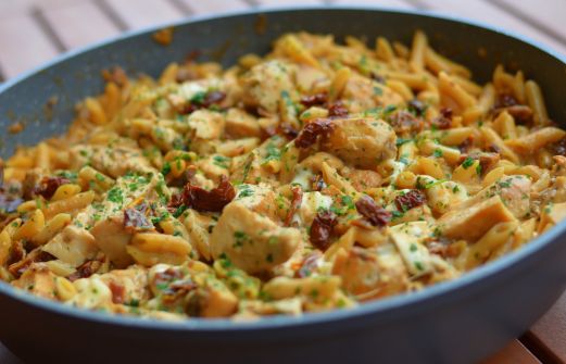 Zutaten für 4 Personen 500 g Hähnchenbrust 100 g getrocknete Tomaten 1 Zwiebel 1 Knoblauch 200 g Sahne 1 Liter Hühnerbrühe 250 g Penne ich hatte Mini Penne 200 Büffel-Mozarella 1 EL Tomatenmark Fett zum braten Salz ,Pfeffer, Oregano 1 Prise [...]