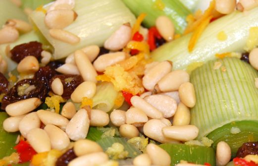 Lauch putzen, waschen und in fünf-Zentimeter-Stücke teilen. In kräftig gesalzenem, kochendem Wasser zwei b [...]