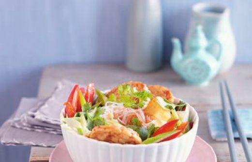 Glasierter Tempeh auf Glasnudeln Zutaten 1 Stück Ingwer (ca. 20 g) 2 EL Chili-Sauce 4 EL Sojasauce 1 EL Dattelsirup (ersatzweise Agavensirup) 2 EL Limettensaft 200 g Tempeh (s. Rezept-Tipp) 100 g Glasnudeln 1 rote Paprikaschote 1 Bund Frühlingszwiebeln 1 Dose Ananasstücke ( [...]