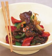 Rindfleisch Thai- Style. Das Rezept satmmt aus dem sehr gelungenen Kochbuch Rosa´s Thai Cafe .