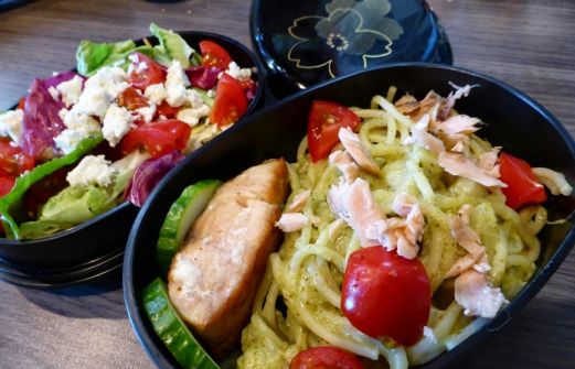 Auch heute gab es wieder ein ganz einfaches Bento. Statt mit Lachs kann man es natürlich auch mit Hühnchen oder auch ganz ohne zubereiten.