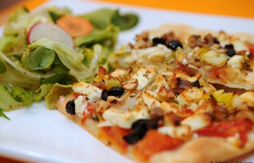 Pizza liebe ich in allen Varianten (okay, nicht mit Fisch und Meeresfrüchten...). Ansonsten darf aber so allerlei mit drauf. Bei dieser Version lassen die Baumnüsse die vegetarische Gemüse-Pizza zu einem knackigen Erlebnis werden. Das Rezept stammt aus dem Buch "Ziegen- und Schafskäse" (Erika