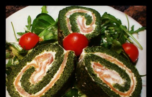 4 Portionen (1 Roulade) 350g Blattspinat 3 Eier 1 Packung Meerrettichsauce 150g Frischkäse 150g Lachs Zitronensaft Salz & Pfeffer Muskat Spinat auftauen und in einem Sieb gut abtropfen lassen, danach ausdrücken. Eier trennen Eiweiss steif schlagen Eigelb zu Blattspinat in ei [...]