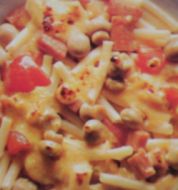 Mittwochs mag ich eine schnelle, einfache Küche Rezept 250 Gramm Makkaroni Salz 400 Gramm gekochter Schinken 2 Stangen Porree 1 EL Butterschmalz 5 Eier 750 Milliliter Milch frisch gemahlener Pfeffer frisch geriebene Muskatnuss 1 TL getrocknete Krä [...]