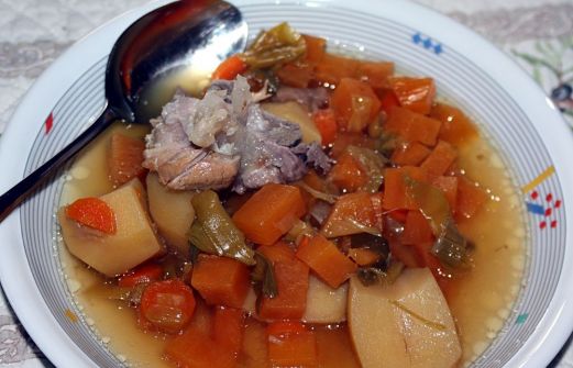 Zutaten: 1 Steckrübe 1 Eisbein 1 Stange Porree 1 EL Salz 1 TL Pfefferkörner 2 l Wasser 4 Kartoffeln 4 Mohrrüben Zubereitung: Das Eisbein mit dem in Ringe geschnittenen Porree in einen großen Topf / Schnellkochtopf geben und mit 2 l Wasser auffüllen und mit Salz würzen. Alles solang [...]