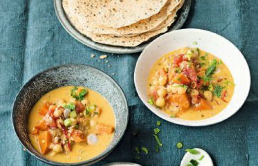Süßkartoffel-Kokos-Curry Zutaten 800 g Tomaten 1 Dose Kichererbsen (400 g Abtropfgewicht) 800 g Süßkartoffeln 1 Gemüsezwiebel 2 Knoblauchzehen 20 g Ingwer 1 rote Chilischote 1 TL Korianderkörner 3 EL Öl 1 TL gemahlener Kreuzkümmel Salz 1 Dose Kokosmilch (400 ml) 4 Früh [...]