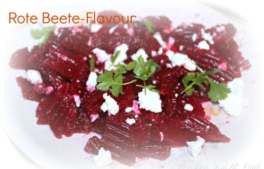 Rote Beete Salat mache ich ja wirklich gerne. Es ist immer eine ganz schöne Sauerei, denn ihr wisst ja, dass die Farbe echt hartnäckig sein kann. Selbst auf dem Teller sieht das dann manchmal nach ner ordentlichen Schlacht aus, weshalb ihr vielleicht lieber kein weißes Geschirr wählt.