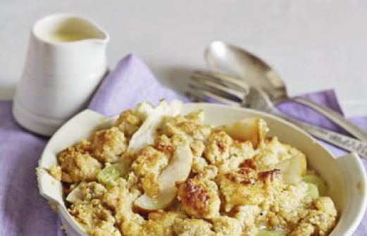 Birnen-Walnuss-Crumble mit Vanillesauce Zutaten 800 g kleine Birnen (z. B. Forelle) 2 EL EL Zitronensaft 2 EL Birnendicksaft 1 TL abgeriebene Bio-Orangenschale 150 g Walnusskerne 200 g Dinkelmehl (Type 1050) 100 g Vollrohrzucker 100 g sehr kalte Butter (in Stückchen) 250 g k [...]
