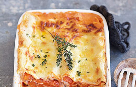 Kürbis-Lasagne Zutaten 750 g Kürbis (z.B. Hokkaido- oder Muskatkürbis) 100 g Staudensellerie 2 Zwiebeln 1 Zehe Knoblauch 4-5 EL Olivenöl 300 ml Gemüsebrühe 500 g passierte Tomaten (Tetrapak) Salz Pfeffer ½ TL Zimt 1 EL frisch gehackter Thymian 1 gehäufter EL Butter [...]