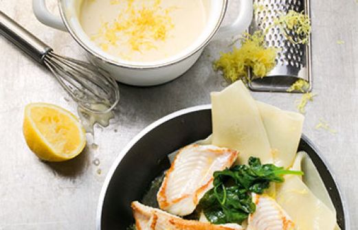 Seezungen-Lasagne mit Zitronen-Béchamel Zutaten 4 kleine Seezungenfilets (je ca. 80 g) 1 Bio-Zitrone 250 g frischer Babyspinat 6 Lasagneblätter (ca. 125 g) Salz 4 EL Butter 1 EL Mehl 250 ml Milch Zucker weißer Pfeffer frisch geriebene Muskatnuss Küchentuch aus Stoff [...]