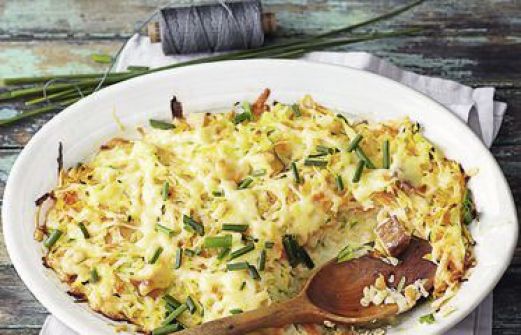 Gemüseraspel-Auflauf mit Weizen Zutaten Salz 200 g Parboiled Weizen (z. B. Ebly) 1 Zucchino (ca. 200 g) 1 Kohlrabi 1 große Möhre 100 g Räuchertofu 150 g geriebener mittelalter Gouda Pfeffer 4-5 Zweige Thymian 200 g Sahne 2 Eier 1/2 Bund Schnittlauch Öl für die Form [...]
