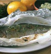 Gegrillte Forelle mit Lardo Zutaten 4 Forellenfilets mit Haut à 150 g 1 Schalotte 1 Fenchelknolle à 300 g 1 mittelgroße Möhre 300 g vorwiegend festkochende Kartoffeln (z. B. Agria) 5 EL Sauerrahmbutter 1 Knoblauchzehe Salz, schwarzer Pfeffer aus der Mühle 2 frische Lorbeerbl [...]
