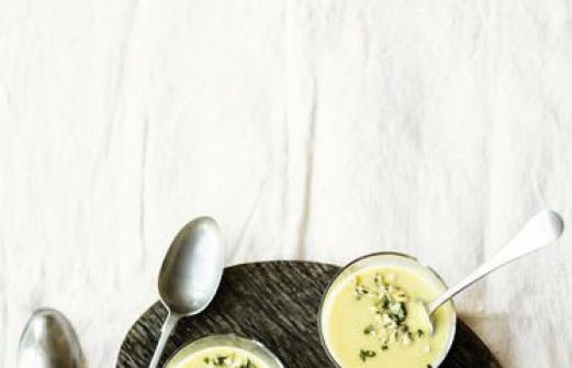 Vichyssoise mit Limetten-Gremolata Zutaten 250 g Lauch (nur weiße Teile) 300 g mehligkochende Kartoffeln 2 kleine Schalotten (ca. 60 g) 30 g Butter 1 l Gemüsebrühe 1 Lorbeerblatt 200 g Sahne Salz frisch gemahlener grüner Pfeffer 1 Bio-Limette 2 Frühlingszwiebeln 20 g ung [...]