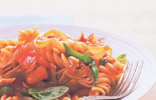 Fusilli mit Tunfisch und Zwiebeln Zutaten 500 g Tomaten 4 Zwiebeln 3 EL Olivenöl Salz Pfeffer 1 Knoblauchzehe je 150 ml Brühe und Rotwein 400 g Pasta (z. B. Fusilli) 1/2 Bund Basilikum 1 Dose Tunfischstücke ohne Öl (150 g Abtropfgewicht) 2 EL Kapern Anzahl Portionen [...]