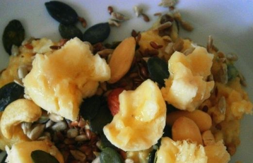 Orangengrießbrei Zutaten 1 Orange 300 ml Milch 50 g Haferflocken 50 g Weichweizengrieß Leinsamen Kürbiskerne Sonnenblumenkerne verschiedene Nüsse 1 Banane Anzahl Portionen: 1 1 Orange , 300 ml Milch , 50 g Haferflocken , 50 g Weichweizengrieß , [...]