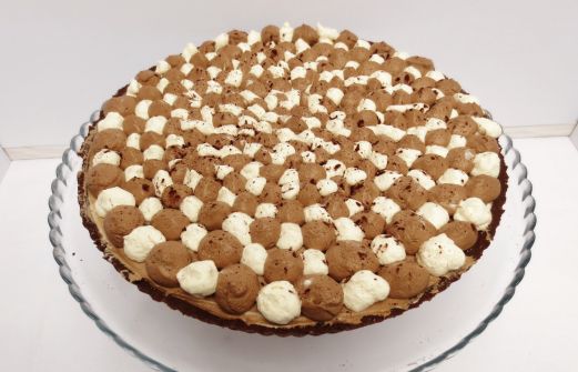 Für den Mürbeteig 45 g Zucker 50 g Puderzucker 190 g weiche Butter 260 g Mehl 20 g Kakao 1 TL Salz 1 Eigelb Für das weiße Mousse 150 g weiße Schokolade 1 Ei 300 ml Sahne 1 Blatt Gelatine Für das dunkle Mousse 225 g dunkle Schokolad [...]