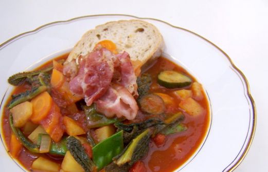 Bekanntlich bin ich ja ein Fleischfresser aber in letzter Zeit esse ich immer weniger Fleisch. Allerdings ein kleines bisschen verstecke ich doch immer noch im Essen. Genauso war es auch bei meiner Minestrone. Die eigentliche Gemüsesuppe habe ich mit ein paar Scheiben gebratenen Scheiben Pancet [...]