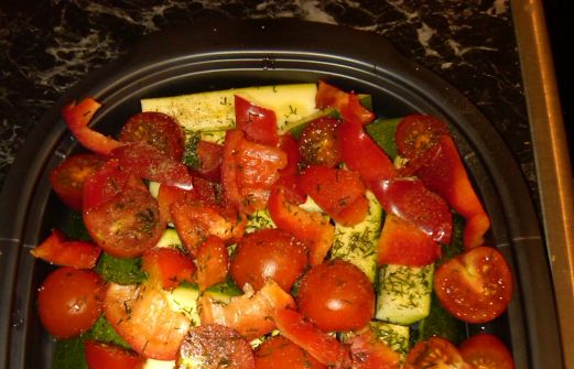 Zutaten für ca. 4 Portionen: 1 große Zucchini, 15 Cocktailtomaten, 1 rote Paprika, 3 EL Olivenöl, Kräutersalz, Basilikum Rezept: Dieses Rezept geht ganz easy! Entweder klein geschnitten für den Backofen, oder grob für den Grill. Für den Grill-Abend die Zucchini einmal halbie [...]