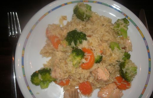 Auf der Suche nach einer Reispfanne, war dieses das erste Rezept, an dem ich hängen geblieben bin. Ich muss zugeben, ich hatte auch nicht so wirklich Lust zum intensiveren Rezeptestöbern. Deswegen also die Lachs-Brokkoli-Reis-Pfanne.