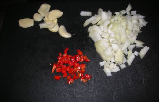 Zuerst schneidet man eine Zwiebel in kleine Würfel, 2 Knobla [...]