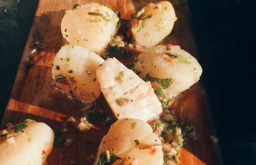 Zedernholz- Brett mindestens 1-2h wässern (oder in Bier einlegen). Jaokobsmuscheln in einer Mischung aus Kapern, Estragon, Schalotten, Petersilie, Kerbel, Olivenöl und Limonensaft einige Minuten marinieren. Die "Planke" auf den heissen Grill legen, Deckel schliessen und warten, bis das Holz zu [...]