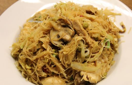 Heute ist mir etwas asiatisch zumute. In etwa 30 Minuten habt ihr dieses leckere Reisnudelgericht fertig.