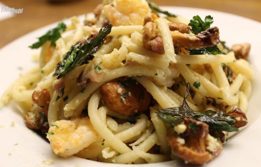 Am liebsten essen wir ja Pfifferlinge in Speck und Zwiebeln geschmort, am Ende mit viel Petersilie und schönen Salzkartoffeln.