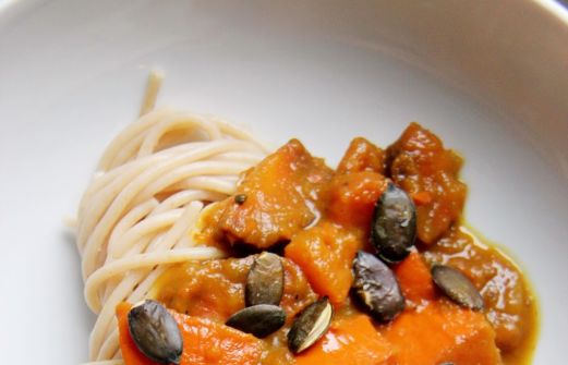 1 kleiner Kürbis (Hokkaido z.B. den muss man nicht schälen!)