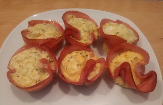 Zutaten 5 Eier 240 ml Milch 150g Reibekäse 1 kleine Zwiebel 1/2 TL Thymian 1/4 TL Salz 1/2 TL Pfeffer 18 große Scheiben Kochschinken etwas Butter Zubereitung Ofen auf 180 Grad Ober/Unterhitze vorheizen, Muffinmulden fetten. Zwiebel fein hacken und mit Milch, Eiern, Käse und G [...]