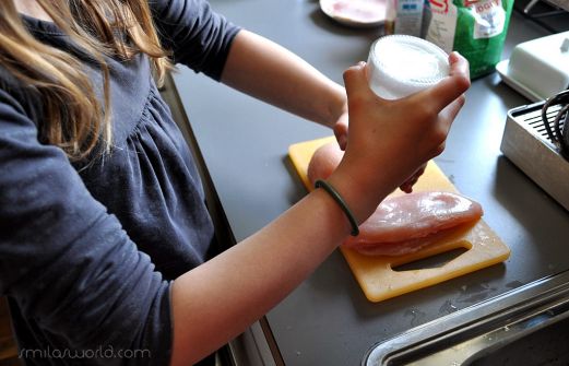 Vom Kochen am Montag war noch Hähnchenbrust Filet übrig, also wurde am Dienstag ein Rezept gewählt, wo das verarbeitet werden konnte. :-)
