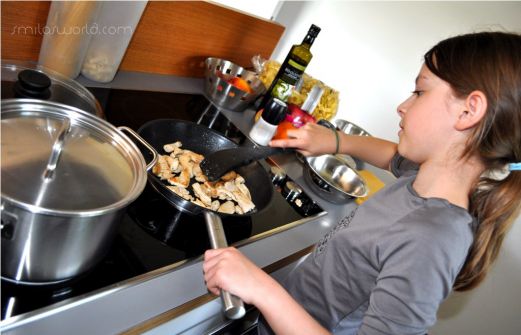Kochen lernen in den Ferien. :-) Rezept aussuchen: Hähnchengeschnetzeltes mit Orangensahne und Safranbandnudeln! Einkaufen, vorbereiten, klein schneiden und dann: Learn to cook during the holidays. :-) Search for recipe : Chicken Breast with orange cream and saffron noodles ! Shop , pre [...]
