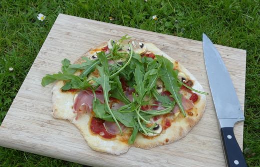 Es wird mal wieder Zeit für Pizza. Auch diesmal habe ich den einfachen Teig mit Pizzamehl, Polenta und Olivenöl gemacht, der schnell zusammen gerührt ist und sich ein paar Tage im Kühlschrank hält. Das Rezept habe ich vor längerer Zeit bei Sandra gefunden.