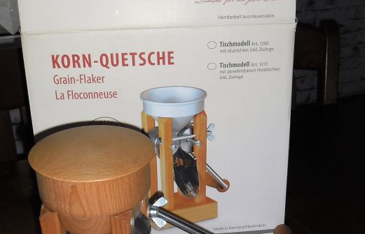 Frische Haferflocken, Dinkelflocken, Roggenflocken usw. selbst zubereiten. Nie hätte ich gedacht, dass die Qualität zwischen gekauften Flocken und frisch gequetschen Flocken so groß ist. Auch optisch unterscheiden sie sich. In der linken Schüssel sind die frisch gequetschten Haferflocken un [...]