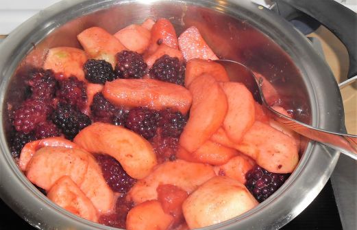 die letzten geernteten Brombeeren aus dem Garten und Äpfel vom Säulen-Apfelbaum wurden zu Marmelade gekocht.
