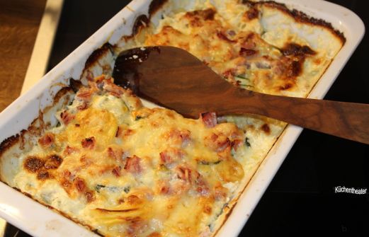 Die Zucchini- und die Kartoffelscheiben habe ich in der Auflaufform einfach [...]