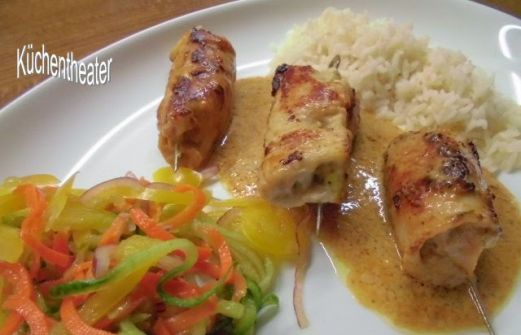 Im Supermarkt habe ich hauchdünn geschnittene Scheiben frischer Putenbrust gefunden. Nun musste mir nur die richtige Idee kommen. Ich holte eine Frischkäsezubereitung aus Ziegenmilch und Kräuter, luftgetrockneten Schinken und Sabei Auf die Fleischscheiben habe ich dann den Schinken geleg [...]