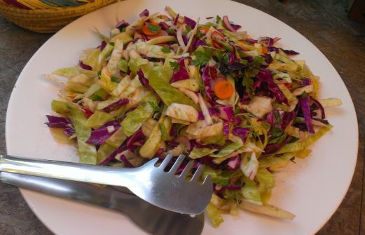 Mexikanischer Kohlsalat Zutaten: 1/2 Weißkohl 1/2 Rotkohl 1Bund Radieschen 2 Möhren 1Bund glatte Petersilie etwas gemahlener Koriander 1 rote Chilischote 1 rote Zwiebel Olivenöl 3 Limetten Salz Zubereitung: 1) Den Weißkohl und den Rotkohl abwaschen und in dünne Streifen schn [...]
