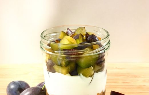 1 ONO = 6SP 1. Schicht: 30g Haferflocken 60ml ungesüßte Mandelmilch (z.B. Alpro) 2. Schicht: 1/2 Apfel, grob geraspelt 1/4TL Zimt 3. Schicht: 100g griechischer Joghurt 2% Fett (z.B. Milbona von Lidl) 4. Schicht: 3-4 Zwetschgen, klein geschnitten 1TL flüssiger Hon [...]