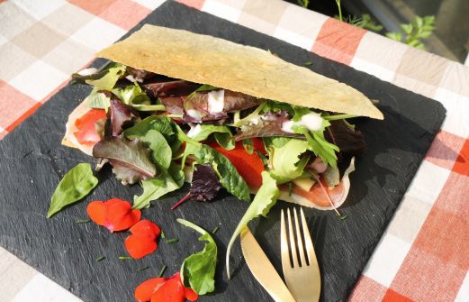 Habe ich im Juni bei Lettinis kennengelernt. Verwendet wird Pane Carasau, ein dünnes getrocknetes Hirtenbrot. Es wird aus Weizenmehl, Hartweizengrieß, Hefe und Salz hergestellt und ihr bekommt es in gut sortiert Feinkostläden wie z.B. Lettinis .