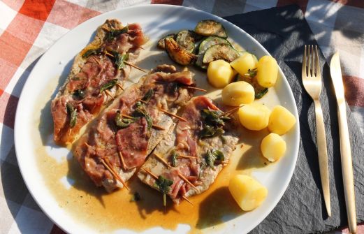 Saltimbocca alla romana dieses Mal ein einfaches, italienisches Gericht. Für eine Portion. 3 dünne Kalbsschnitzel Schinken (luftgetrocknet) Salbei (frisch) Weißwein Butter die Beilagen Drillinge Zucchini Die sehr dünnen Kalbsschnitzel mit dem luftgetrocknete [...]